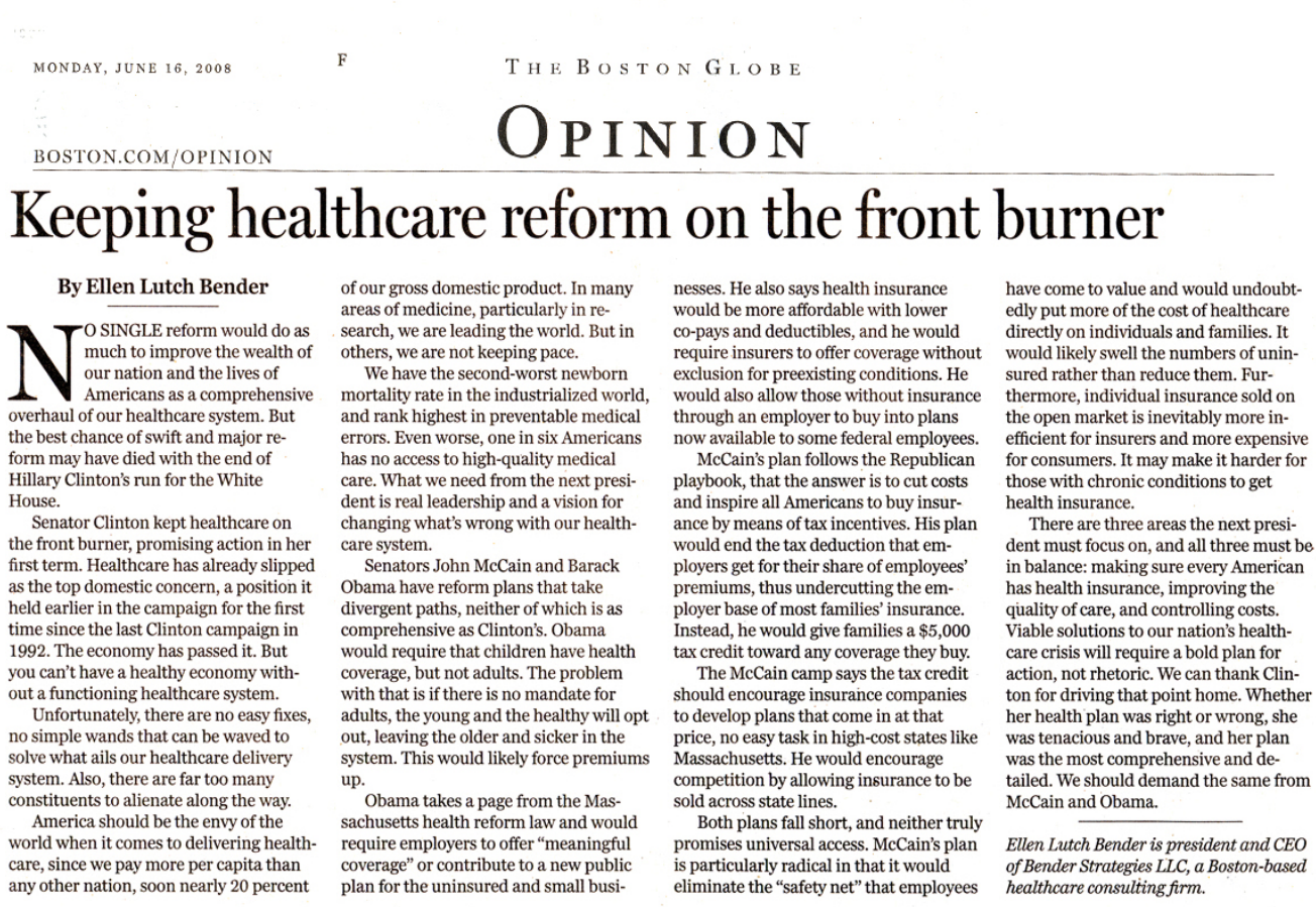Ellen Lutch Bender is president and CEO of Bender Strategies LLC, a Boston-based health care consulting firm.