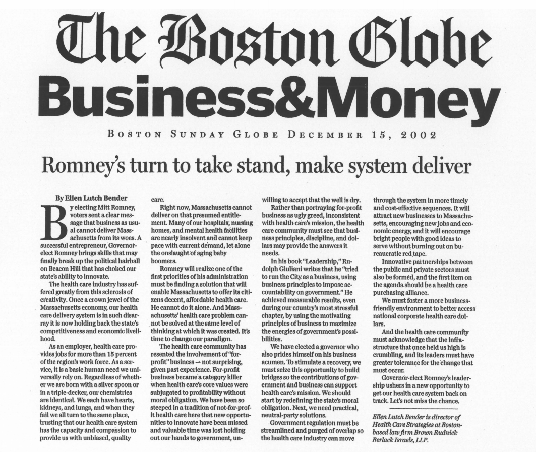 Governor-elect Romney’s leadership ushers in a new opportunity to get our health care system back on track. Let’s not miss the chance.